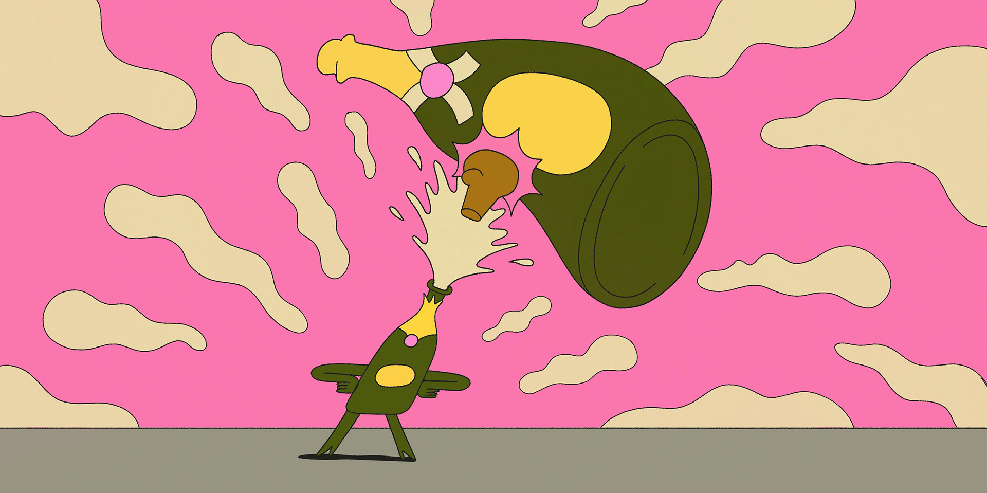 “How David popped Goliath in the world of champagne” - Illustration for Financial Times HTSI article about how big champagne brands are being shaken by underdogs. Art Direction: Carlo Apostoli