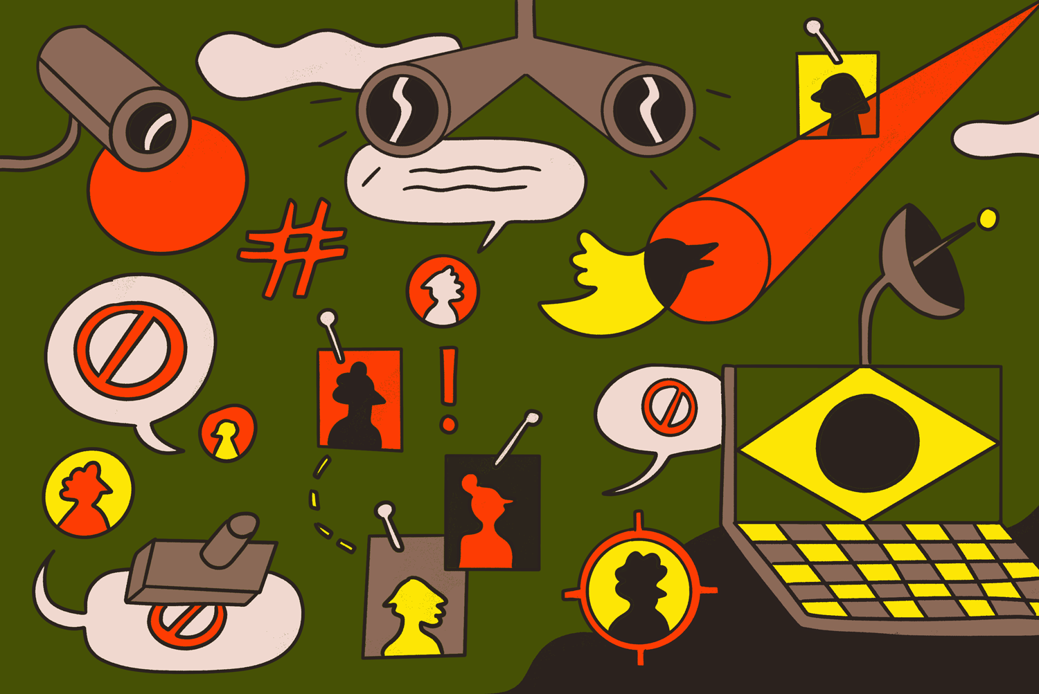 Illustrations for Intercept Brasil's series about the rise of techno authoritarianism in Brazil. Art direction: Rodrigo Bento