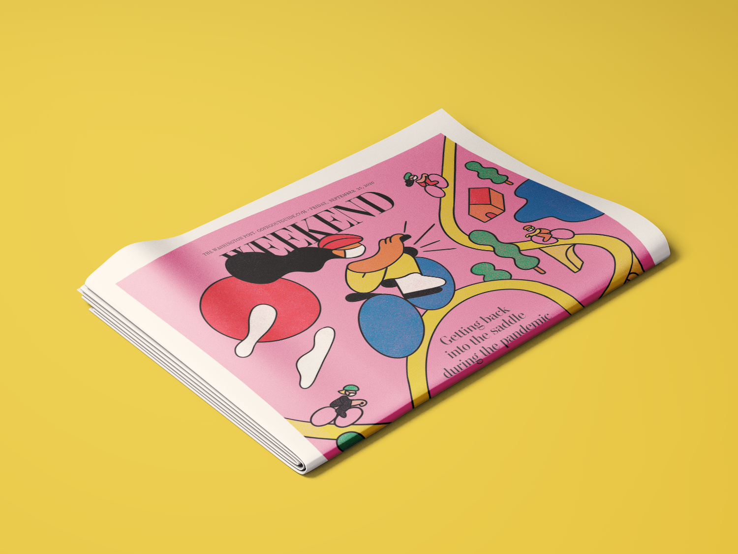 Artwork for The Washington Post's Weekend section cover about the biking etiquette during the COVID-19 pandemic.